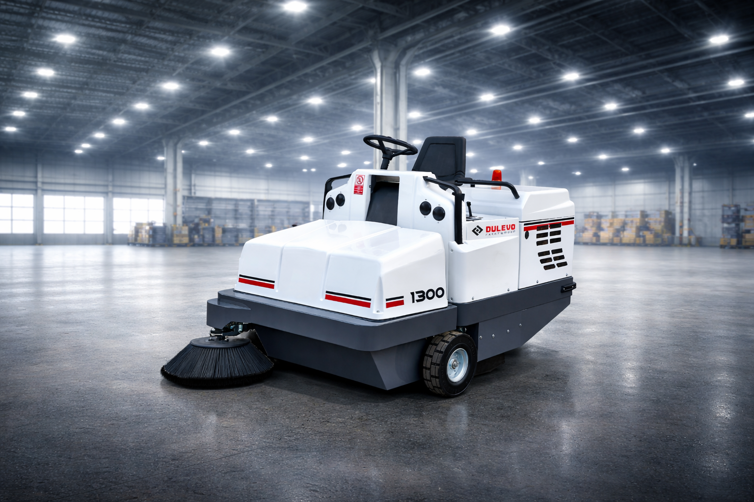 Hohe Aufnahmeleistung, große Kraft, hohe Kehrleistung und ein erstklassiges Saugsystem – die DULEVO 1300 verfügt über alle Eigenschaften für die professionelle Reinigung in Umgebungen der Schwerindustrie, öffentlichen Bereichen und Be- und Entladezonen.